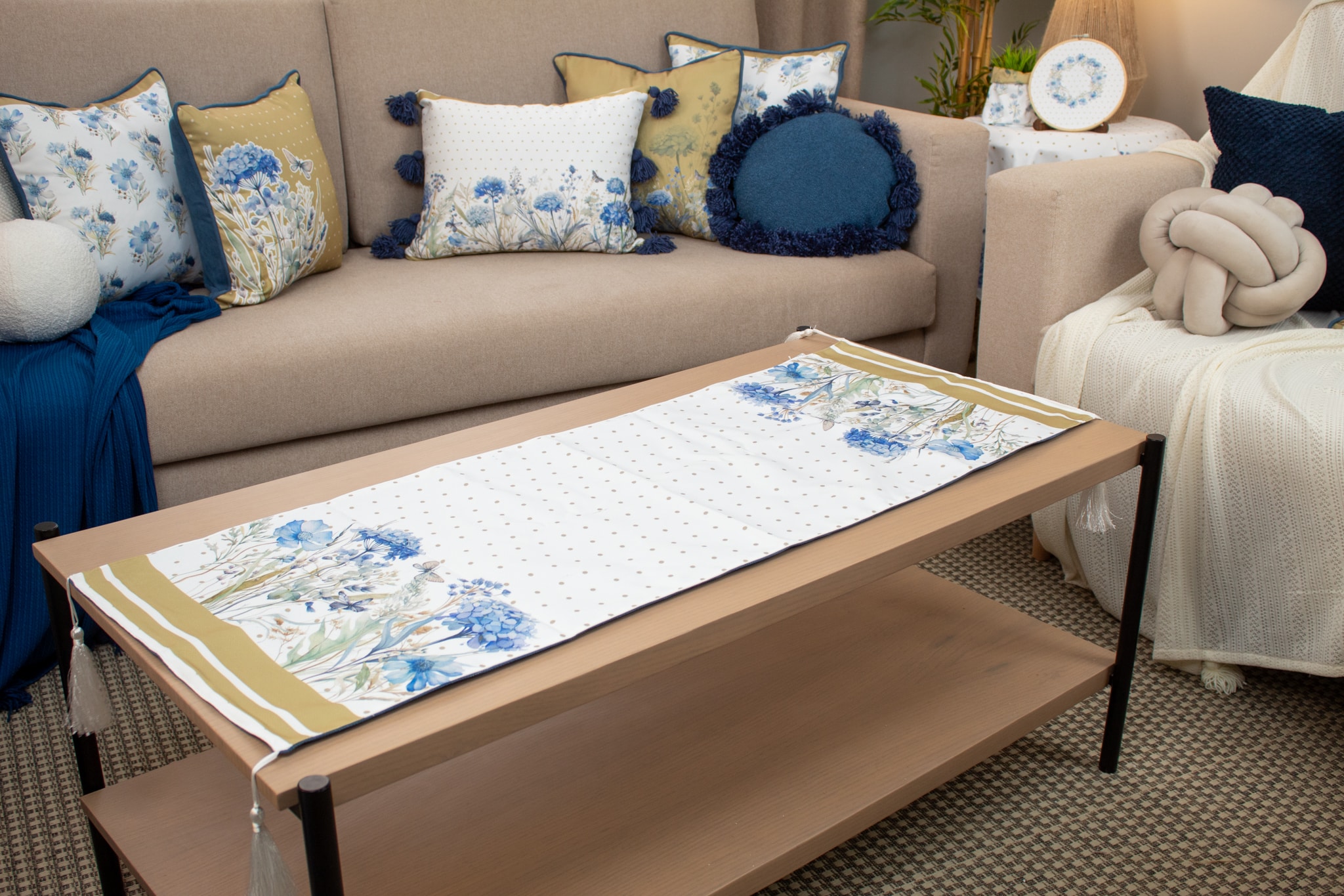 Soft Botanical Table Runner with Tassels – “فلورا” Collection