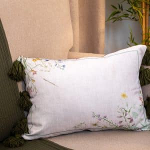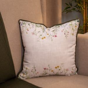 Floral-inspired cushions with delicate botanical prints, available in square and rectangular sizes.