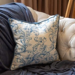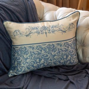 Zelal Decorative Cushions with sophisticated blue patterns, available in square and rectangular sizes.