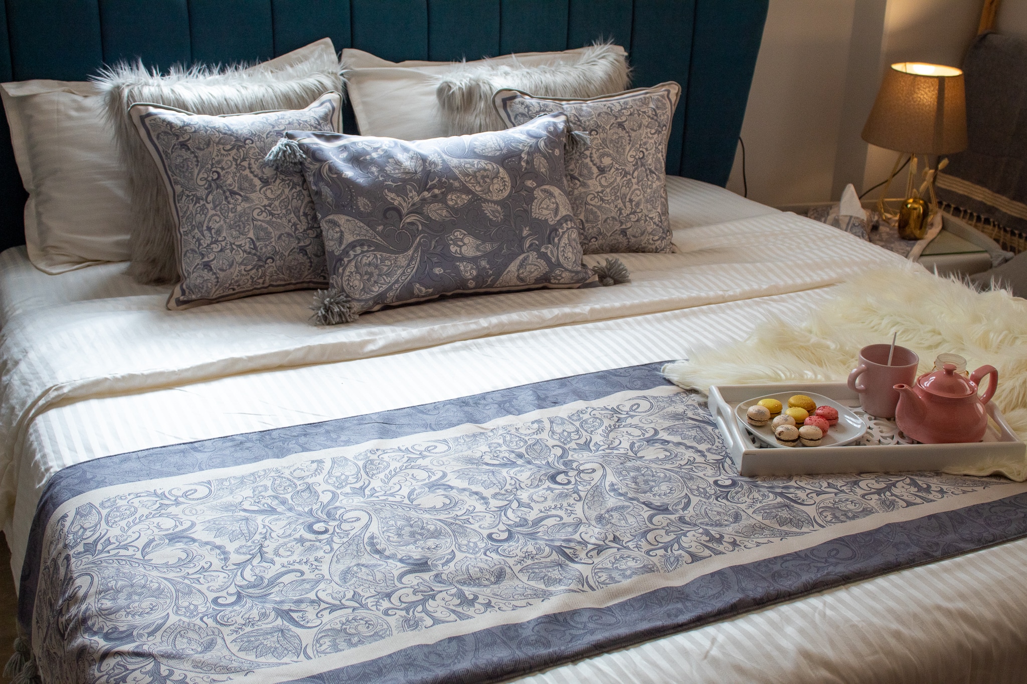 Bed Runner & Curtain Set – Paisley Petroleum | طقم غرفة نوم بيزلي بترولي بنقشة شرقية فاخرة