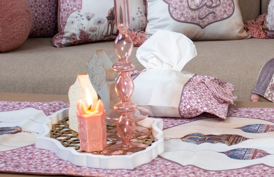 Decorative tissue box cover with Kufic patterns, perfect for a stylish Ramadan setup.