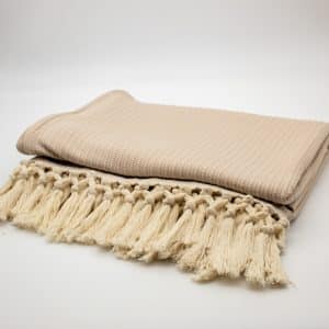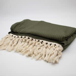 Soft-touch throw blanket with a light wool feel, perfect for sofas or as a cozy living room cover. Available in various colors and two elegant trims: soft tassels or macramé border.